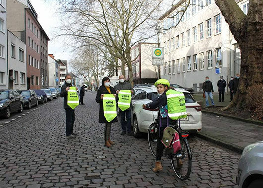 Ein anderes Beispiel ist die Mitarbeit im Verkehrssicherheitsnetzwerk „Duisburg. Aber sicher!“. Dort wurden kürzlich durch die Initiative, Organisation und Spende der Bürgerstiftung reflektierende, grellgelbe Rucksacküberzieher an Kinder der 5. und 6. Klassen ausgegeben, die mit dem Rad den Schulweg meistern. Die erhöhte Sichtbarkeit sowie der aufgedruckte Hinweis an die KraftfahrerInnen auf den Mindestabstand schützen die Kids zusätzlich vor Unfällen: Sichtbarkeit für radelnde Kinder