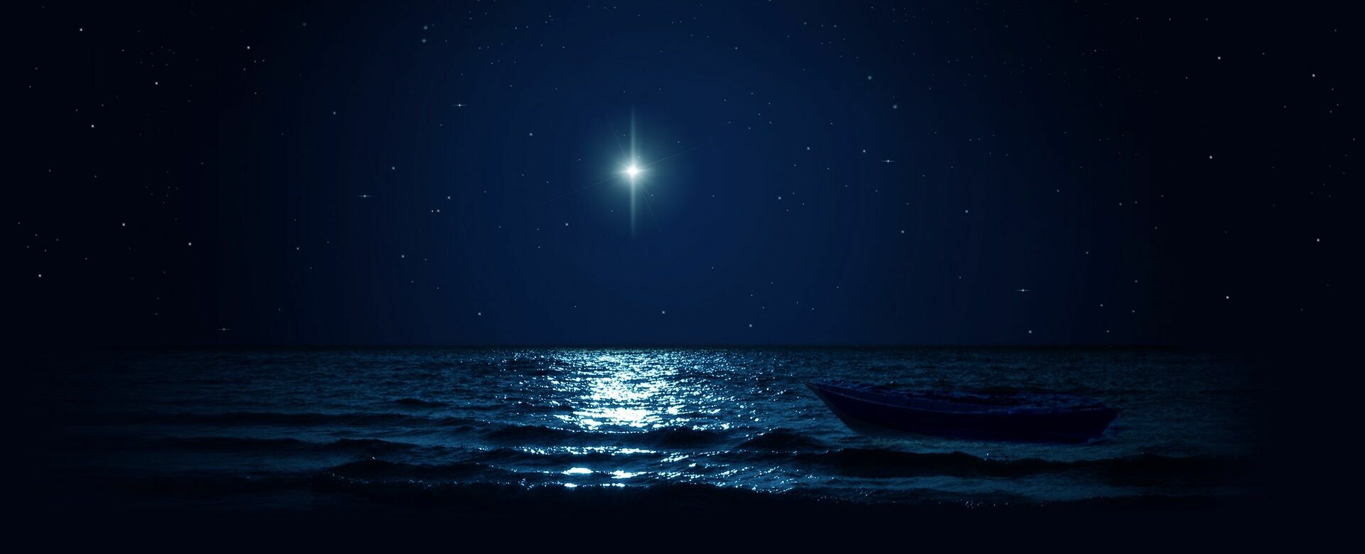 Ein dunkles Meer. Ein kleines Boot auf bewegten Wellen. Eine menschenleere Weite.