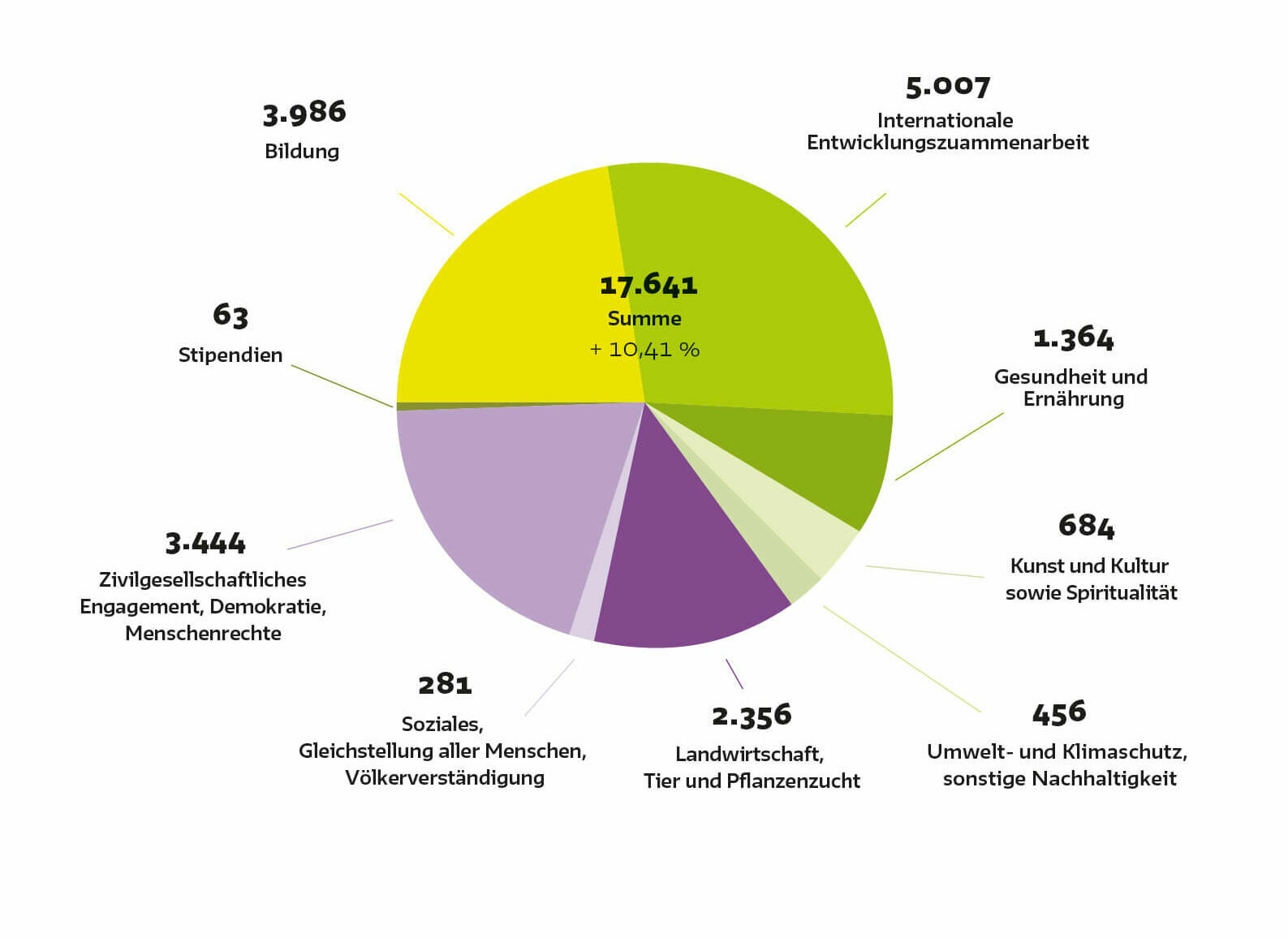 2020 haben über 10.000 Spender*innen und Stifter*innen der GLS Treuhand und ihren Stiftungen Geld anvertraut, um in unterschiedlichen gemeinnützigen Bereichen zu wirken. Erfreulicherweise konnten damit die Förderungen von 16 Mio. Euro (2019) um 10,4 %